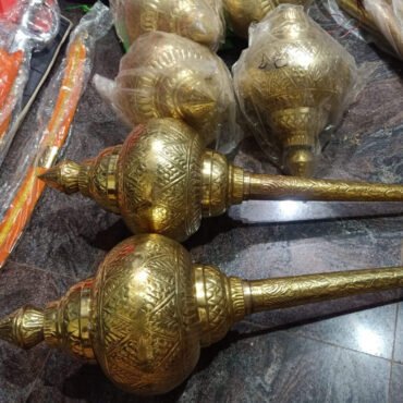 Inspired by classic Indian mace (Gada / Kadayutham) design with intricate embossed detailing and royal finish.