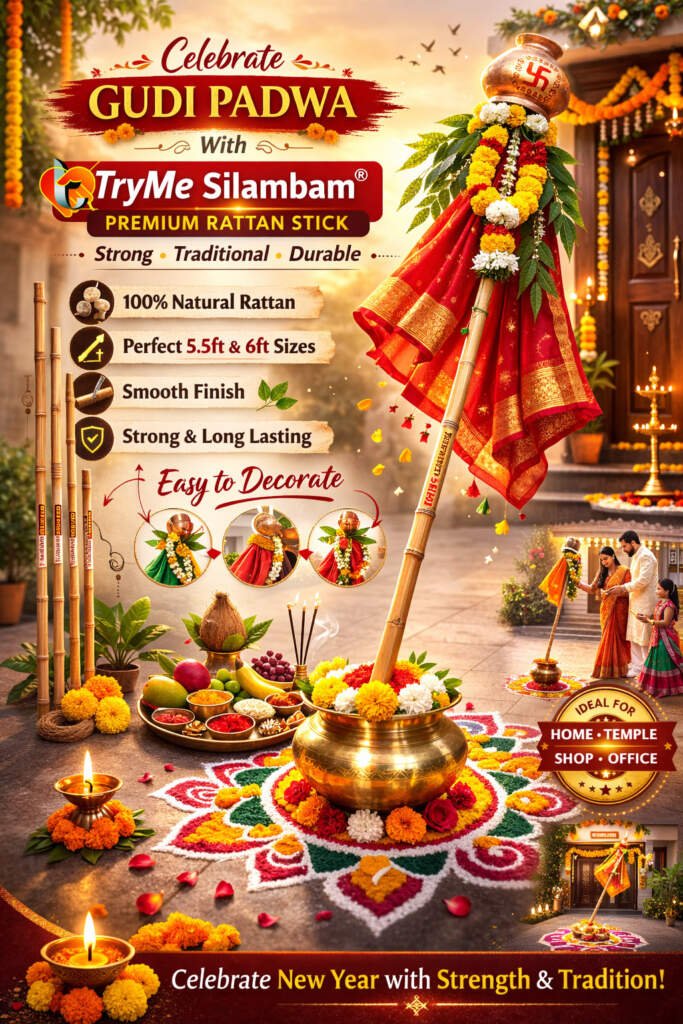 Celebrate Gudi Padwa new beginnings with strength, discipline, and tradition. This Gudi Padwa, elevate your martial arts journey with the TryMe Silambam® (6 Feet) Rattan Cane Stick — now available at a special festive discount.