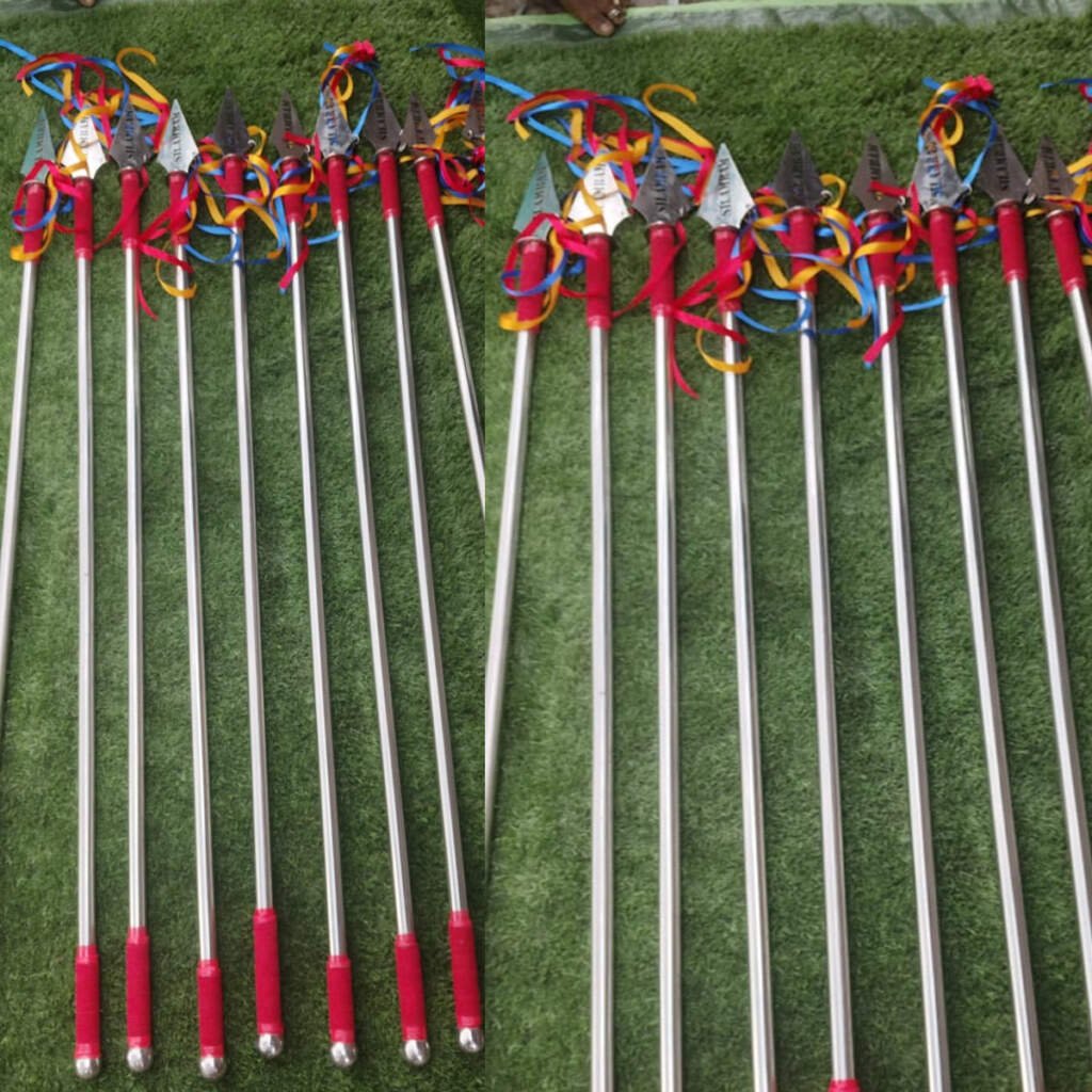 Traditional Iron Vel Kambu Spear for Silambam & Kalaripayattu – Martial Arts Training Spear Head with Handle (6feet pack of 2)